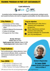 This program aims to identify and promote innovative financing solutions that can support the transition of the port-city ecosystem in the face of climate and environmental challenges. AIVP members know well that ports and coastal cities, at the heart of global trade, are on the front lines of the impacts of the climate crisis. But they also bear some responsibility for this crisis. Their duty is to transform quickly to ensure maritime development that respects the ocean and local populations. As a program partner, AIVP reaffirms its role in supporting port territories toward more sustainable and innovative models, fostering dialogue between public, private, and financial stakeholders.